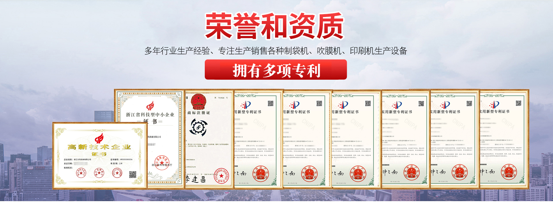 浙江力風(fēng)機(jī)械有限公司創(chuàng)建于2003年,原名瑞安市順風(fēng)包裝機(jī)械有限公司,是一家專注于降解料與塑料機(jī)械設(shè)備研發(fā)、生產(chǎn)和銷售的科技企業(yè)。公司位于歷史悠久風(fēng)景秀麗的浙江省瑞安市,地理位置優(yōu)越,交通便利。公司集工貿(mào)一體,擁有自營進(jìn)出口權(quán),公司產(chǎn)品已通過歐盟CE認(rèn)證。 公司多年來一直把產(chǎn)品的研發(fā)和質(zhì)量放在首位。經(jīng)過近20年的不懈努力研發(fā),公司已獲得20多項(xiàng)專利...